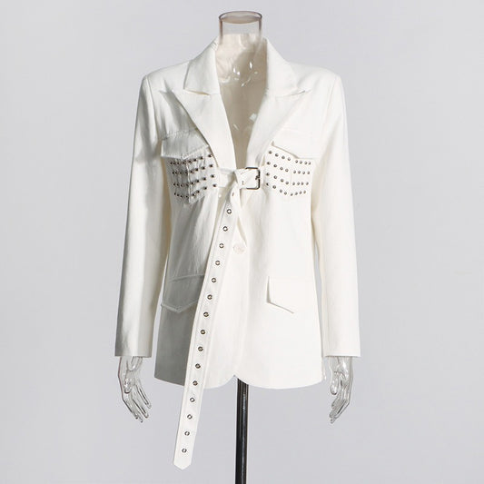 Personalized Australian Show Solid Color Suit New Design Sense Heavy Industry Nail Diamond Lace up Outline Suit Coat for Women